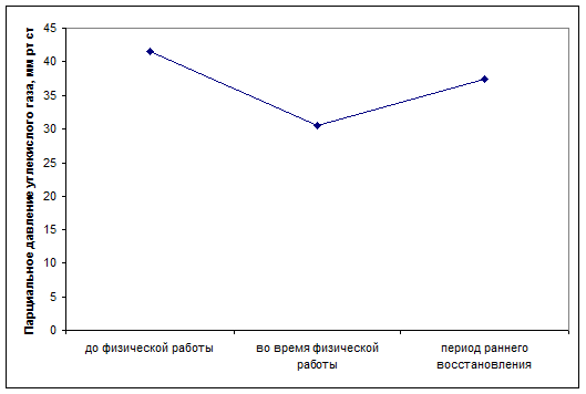 На дорабочем уровне в капиллярной крови пловцов отмечаются высокие значения парциального давления углекислого газа в силу того, что имеет место гиповентиляция легких.
