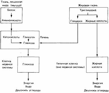 Рис.9. Основные источники энергии, доступные во время голодания |